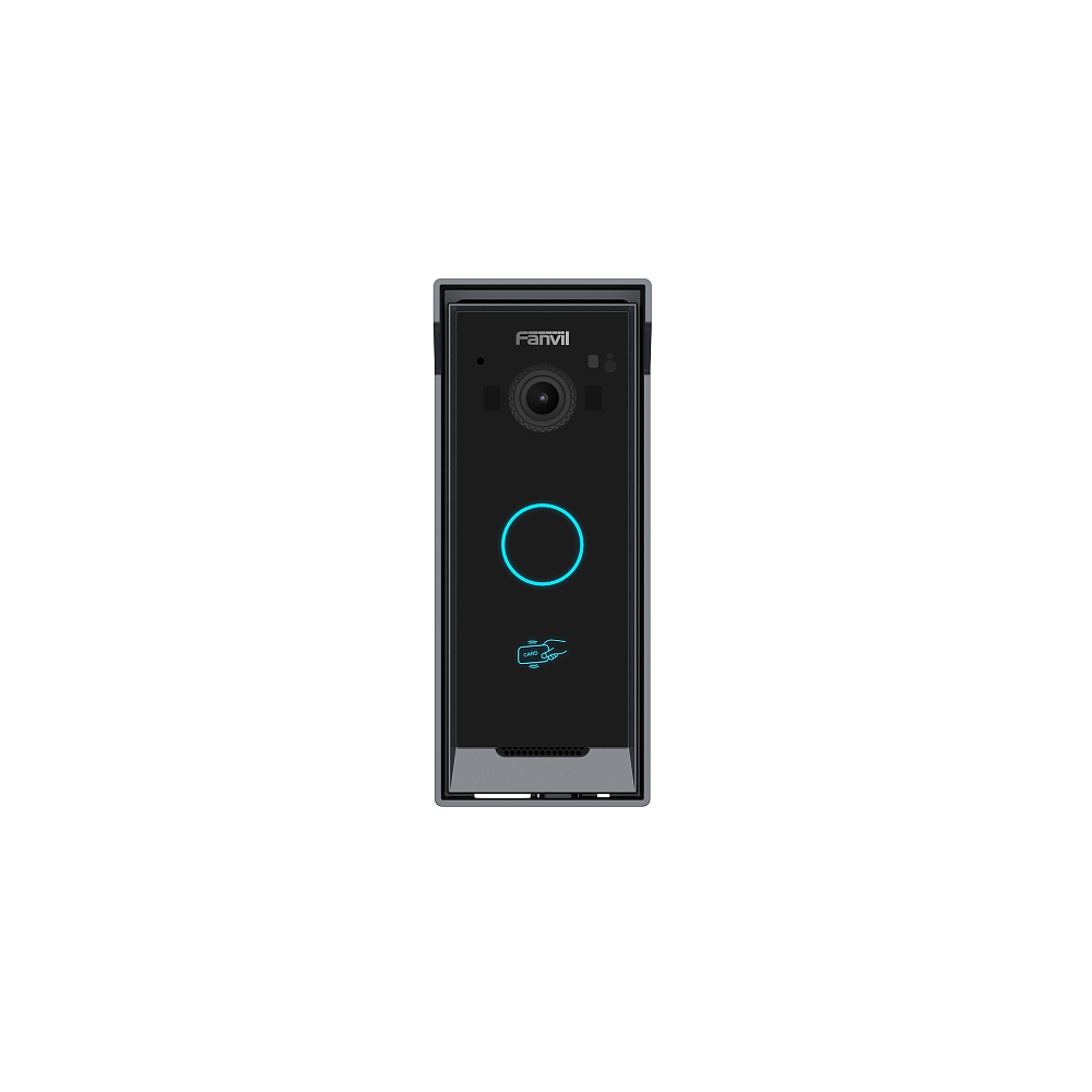 Fanvil i60 — современный SIP-видеодомофон из младшей линейки устройств для безопасности. Оснащен дополнительным защитным металлическим корпусом с козырьком для установки на улице. Считыватель поддерживает карточки Mifare (EM-Marine не поддерживается). Работа при температуре -40~70 °С. Камера 2 Мпикс с режимом ночной съемки. Поддержка ONVIF.