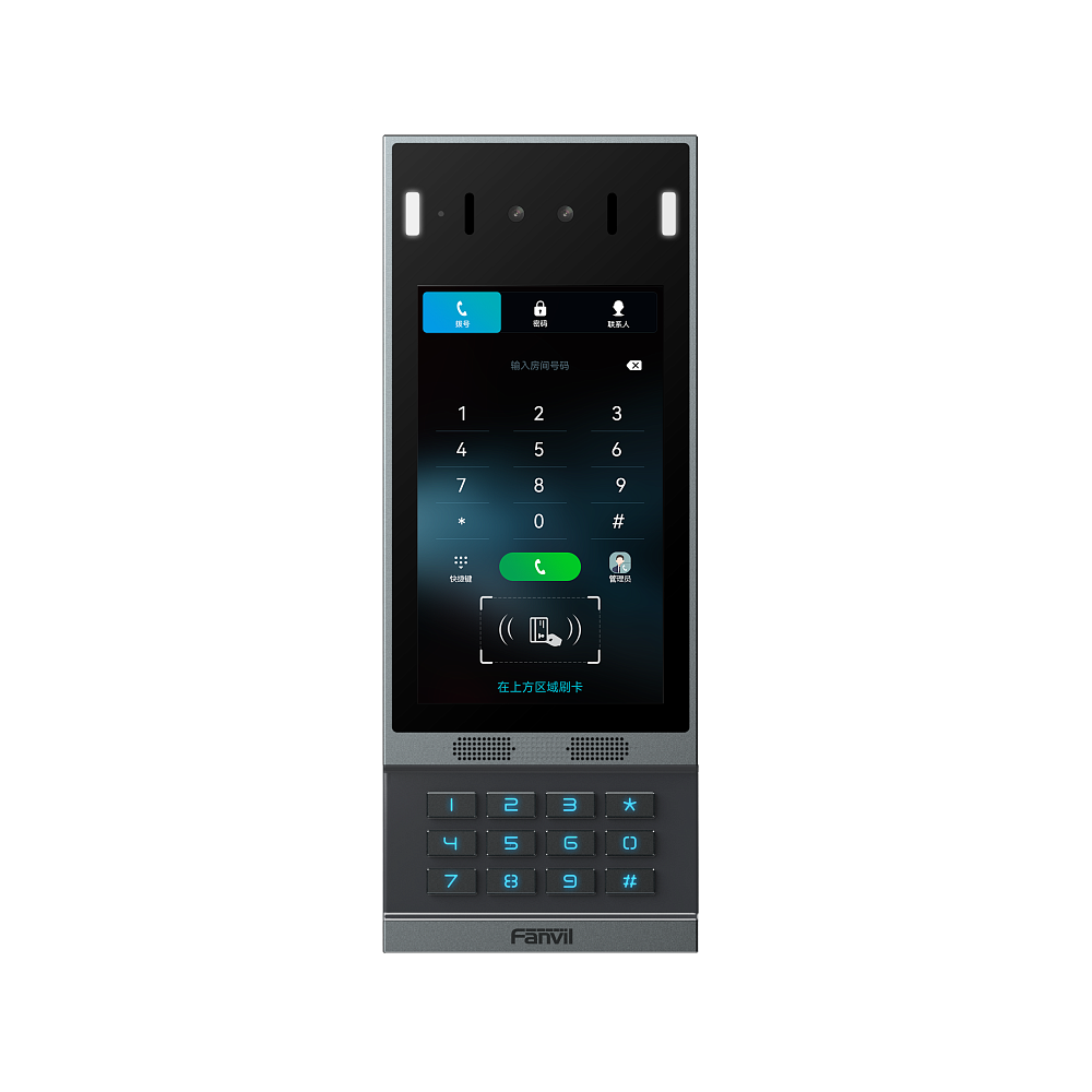 Fanvil i66 — это домофон в новом дизайне с распознаванием лиц, полной клавиатурой (16 клавиш), большим дисплеем, камерой 2 Мп и считывателем RFID. Конструкция изделия выполнена из цельноалюминиевого сплава со степенью ударопрочности IK07.