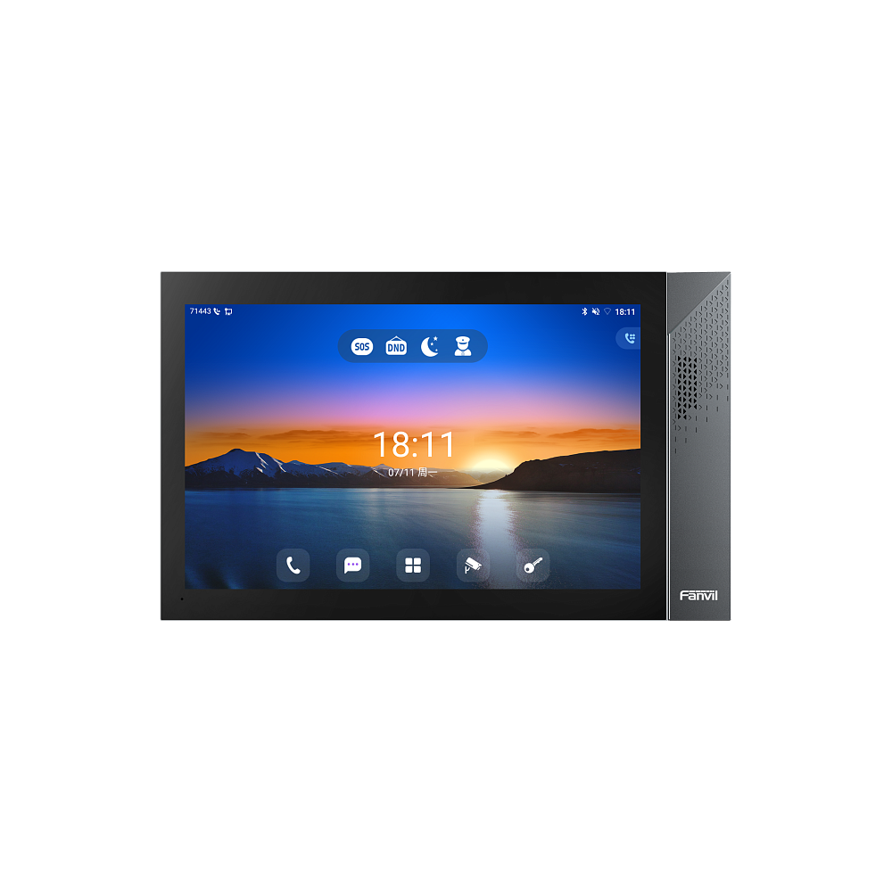 Fanvil i57A — внутренняя SIP-станция от Fanvil на ОС Android для ответа на аудио/видео-вызов с SIP-домофонов Fanvil и открытия двери одним нажатием; с поддержкой WiFi и большим сенсорным экраном 10,1 дюйма. Также из веб-интерфейса панели можно найти камеры, находящиеся в той же сети, и нажатием одной кнопки отображать на дисплее картинку с камеры.